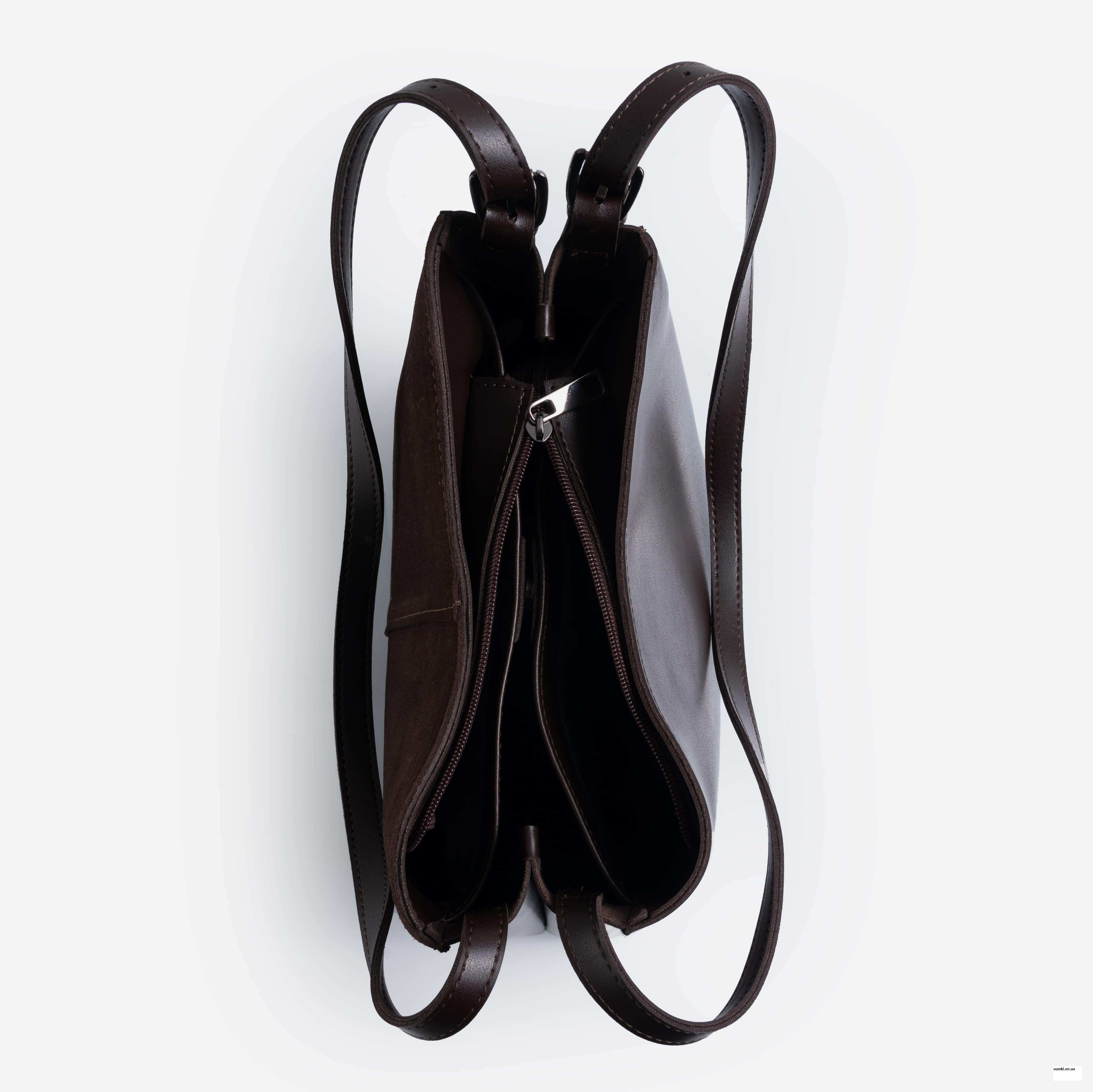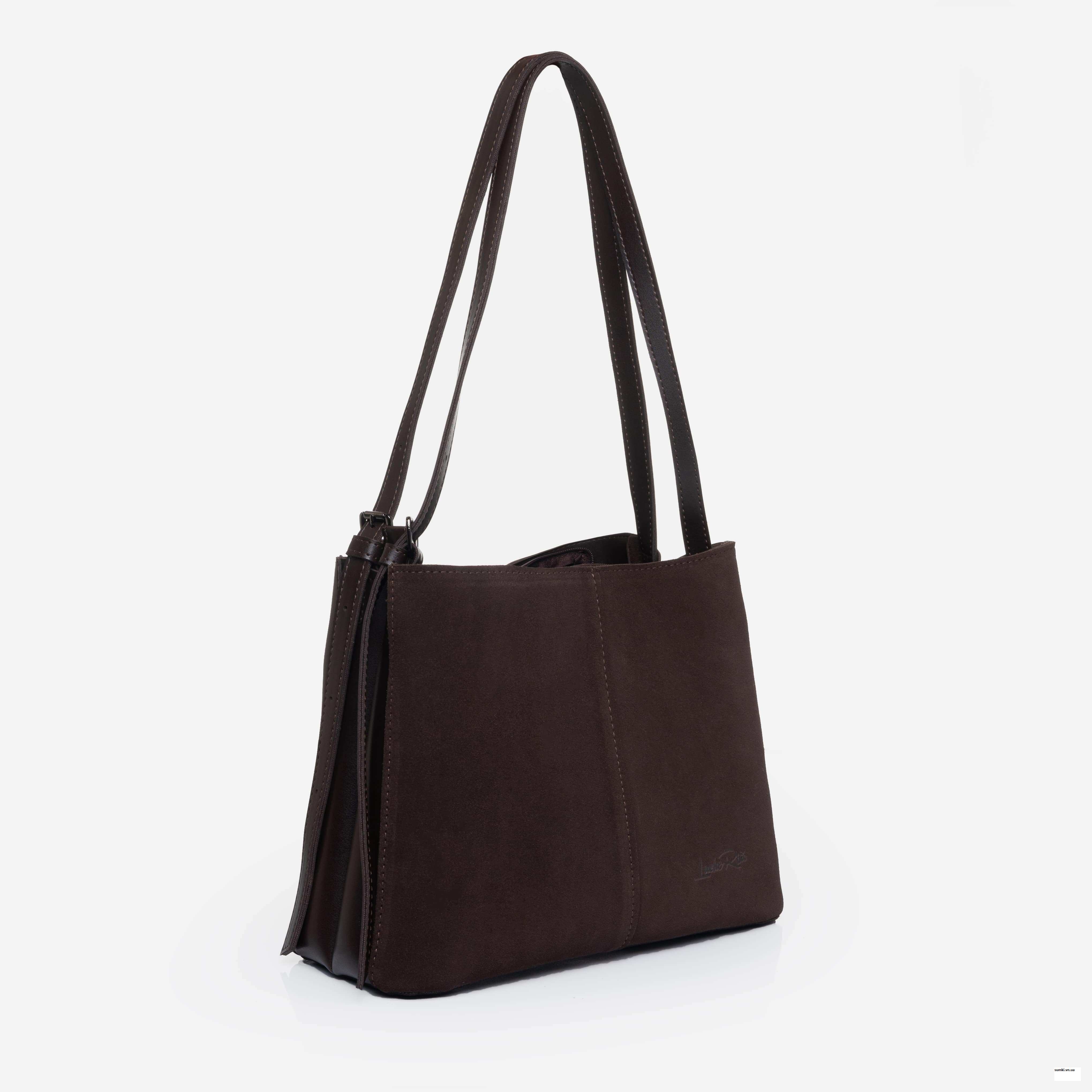 Сумка виготовляється зі шкірозамінника високої якостіта натуральної замші, якиі найкраще зарекомендував себе у використанні. Стінки гарно тримають форму виробу, а спеціально вмонтовані металеві ніжки захищатимуть від пошкоджень. Фурнітура як завжди на висоті і в даній моделі використана в кольорі - нікель.